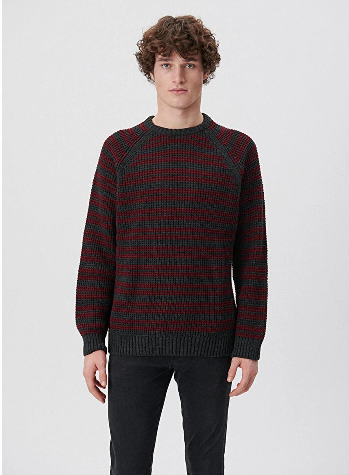 Mavi Çizgili Koyu Bordo Erkek Kazak 0710117-85347 (0710117-85347)