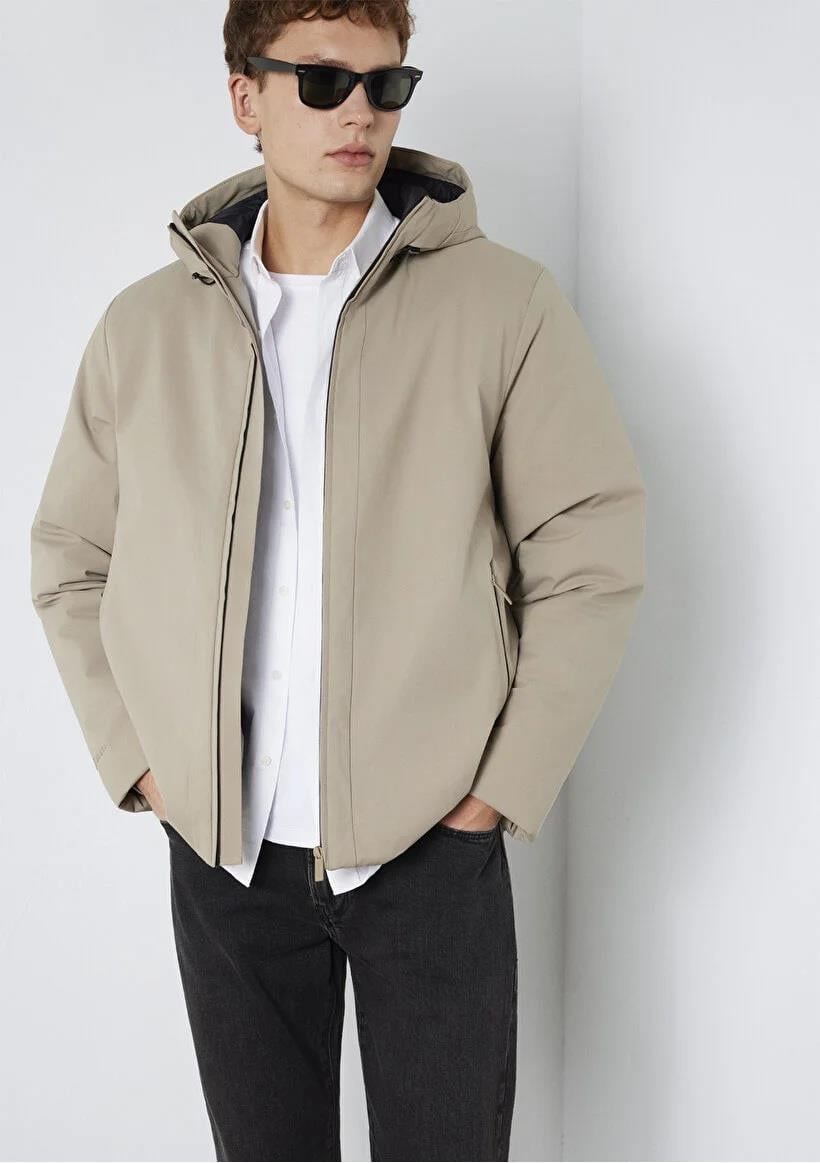 Mavi Kapüşonlu Kum Erkek Mont